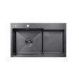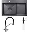 Мийка Kroner KRP PVD Schwarze 7848LHM із нержавіючої сталі з покриттям PVD Schwarze (чорний матовий) — стійка до подряпин, плям і високих температур.